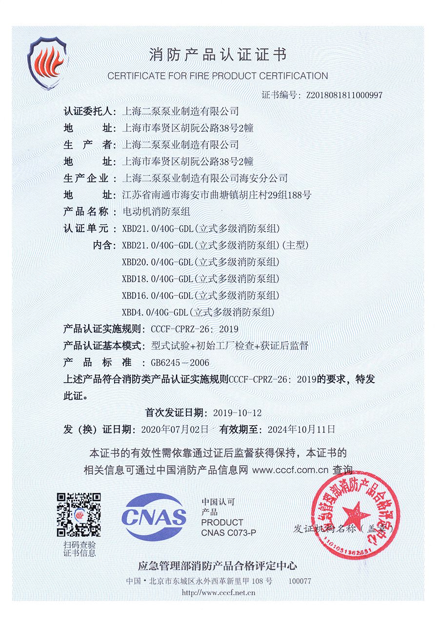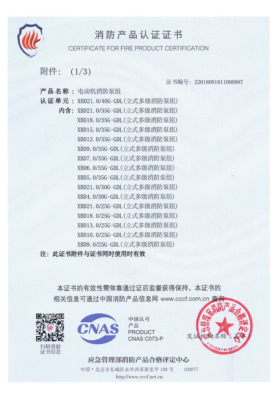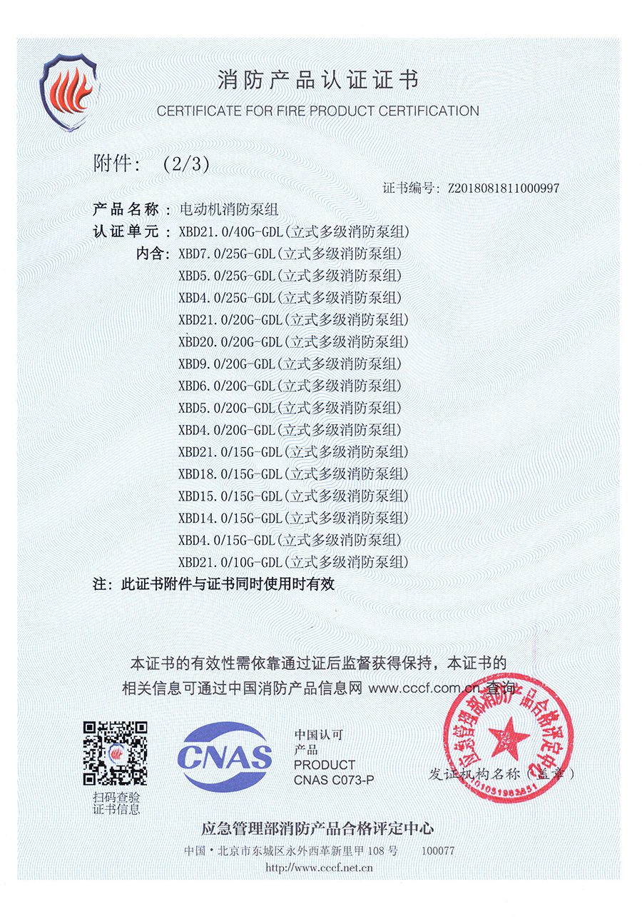 立式多級GDL-消防產品認證證書
